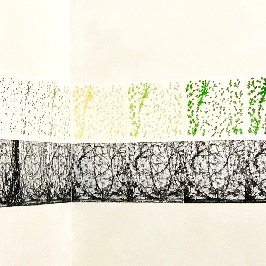 drawing and photography, markers on paper, prints 30 pieces, 18,2 x 18,2 cm each
